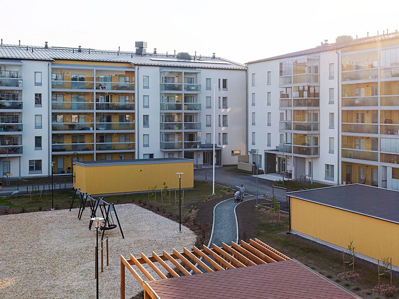 Tampereen Hervantaan valmistui 140 osakehuoneistoa. Urakoimme kohteessa sisäpuoliset tasoite- ja maalaustyöt sekä ulkomaalaukset.