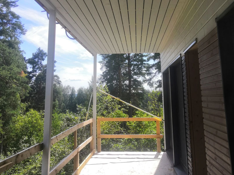 Kangasalan Vesijärvelle valmistuneeseen rivitaloyhtiöön urakoimme ulkopuoliset tasoite- ja maalaustyöt.